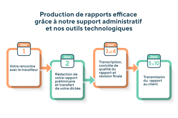 Une équipe est dédiée à l’assurance qualité de vos rapports et notre approche collaborative assure efficacité et conformité aux normes règlementaires du CMQ. C’est ainsi que nous parvenons à livrer des rapports de qualité supérieure qui protègent votre réputation.